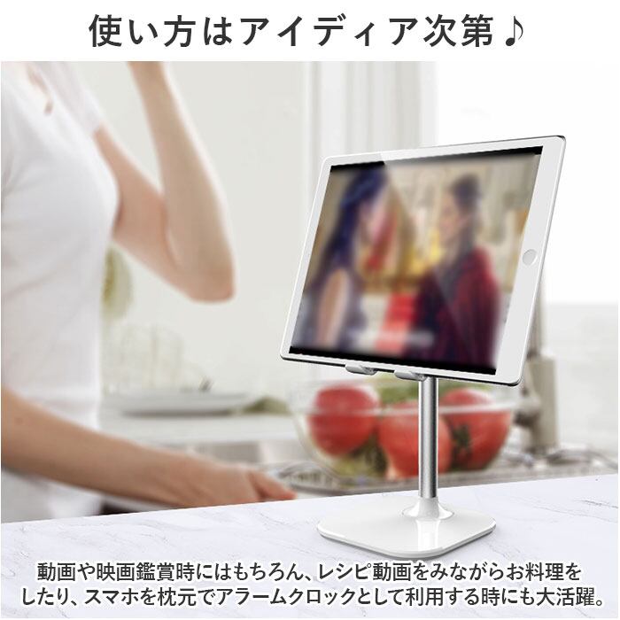 ・動画や映画鑑賞時にはもちろん、レシピ動画をみながらお料理をしたり、スマホを枕元でアラームクロックとして利用する時にも大活躍。