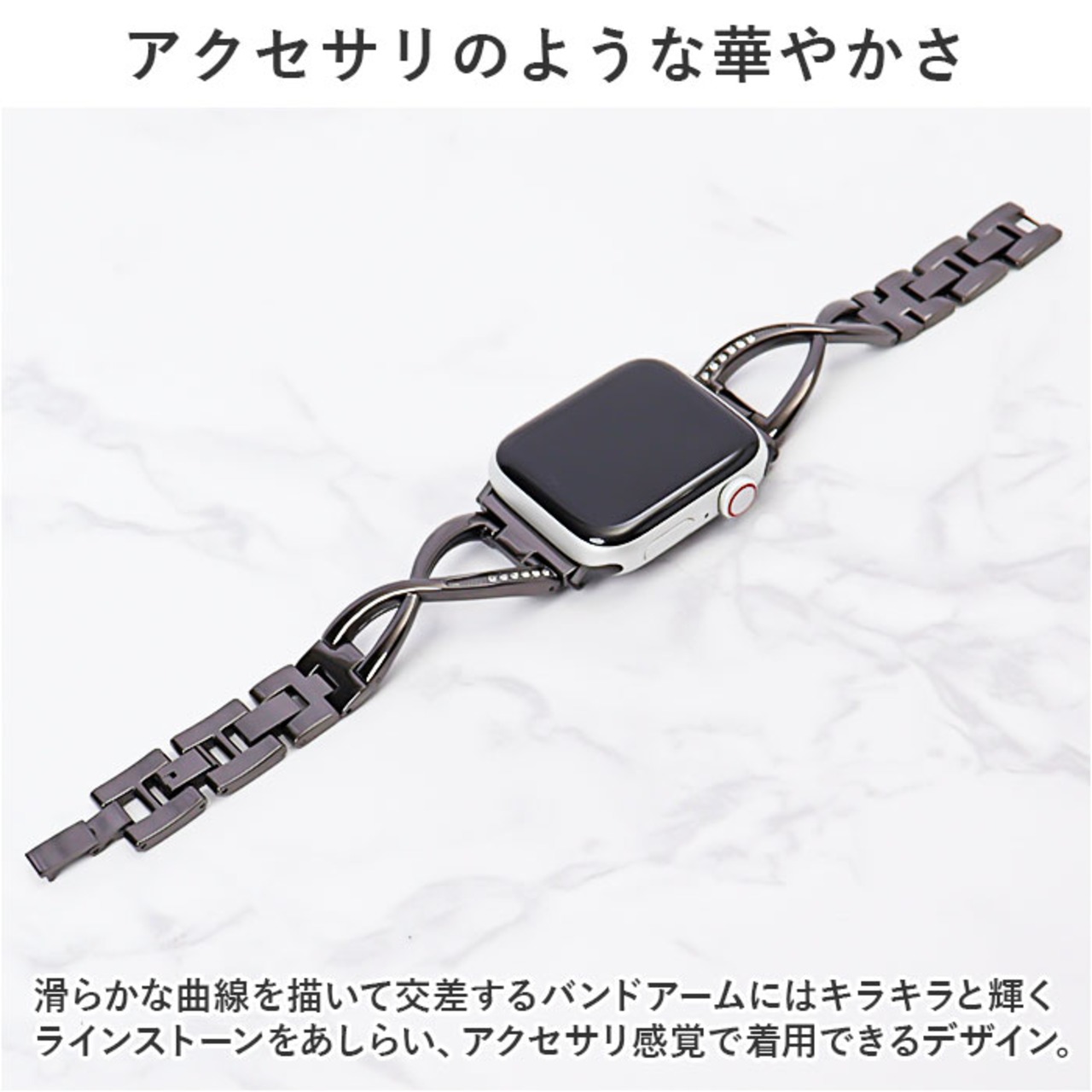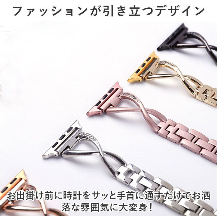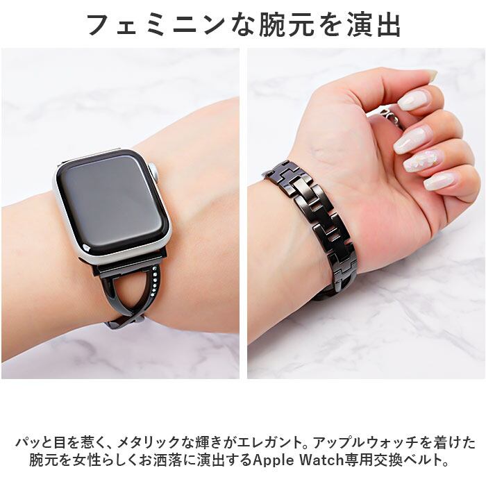 ・パッと目を惹く、メタリックな輝きがエレガント。アップルウォッチを着けた腕元を女性らしくお洒落に演出するApple Watch専用交換ベルト。