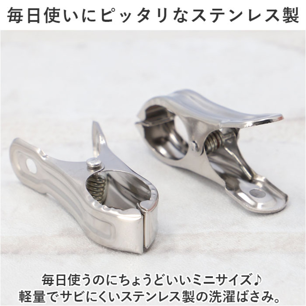 ・毎日使うのにちょうどいいミニサイズ♪軽量でサビにくいステンレス製の洗濯ばさみ。