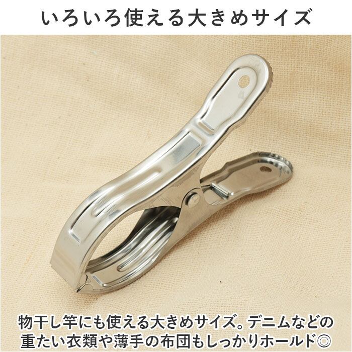 ・物干し竿にも使える大きめサイズ。デニムなどの重たい衣類や薄手の布団もしっかりホールド◎