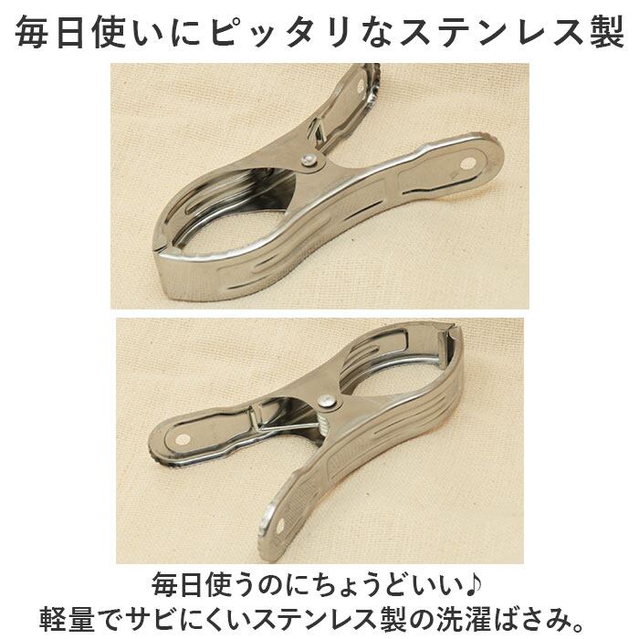 ・毎日使うのにちょうどいい♪軽量でサビにくいステンレス製の洗濯ばさみ。