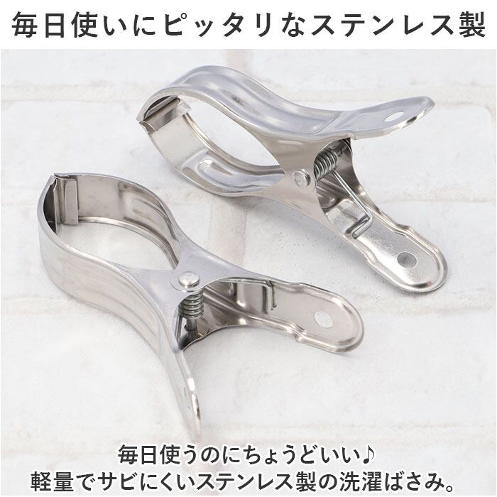 ・毎日使うのにちょうどいい♪軽量でサビにくいステンレス製の洗濯ばさみ。