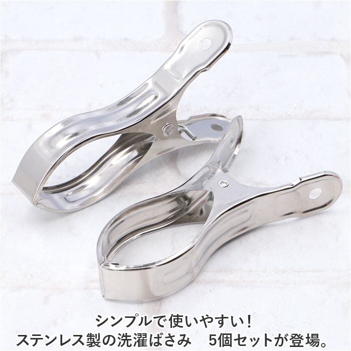 ・シンプルで使いやすい!ステンレス製の洗濯ばさみ 5個セットが登場。