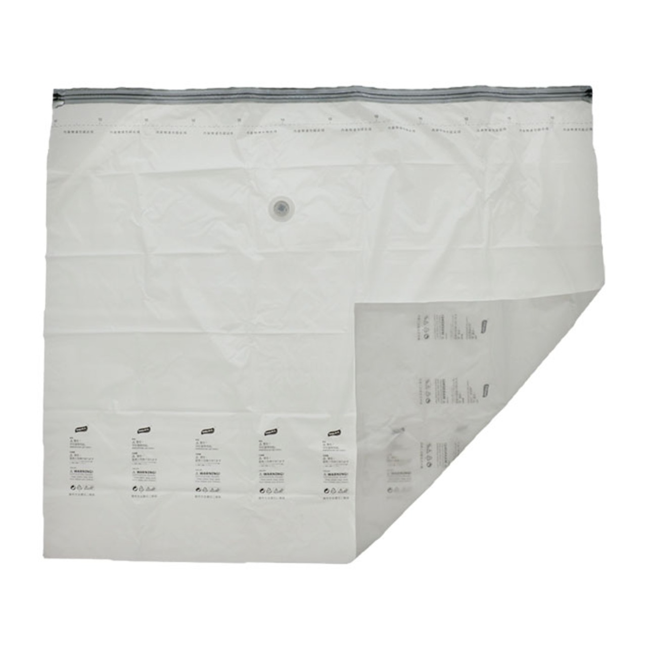 ・真空袋開口部のシール式ファスナーはワンタッチでクローズ!パチパチ指で押して閉じる手間のない、便利なスライダーが付属。