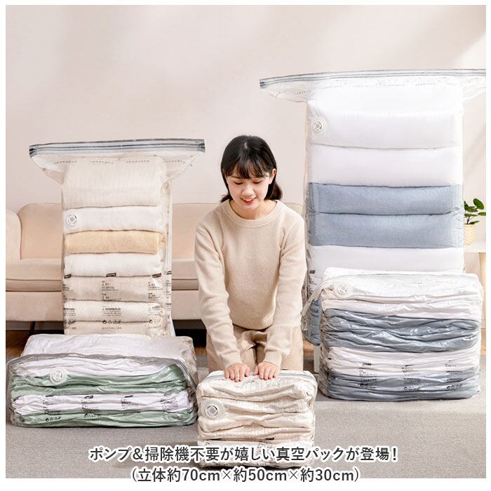 ・ポンプ&掃除機不要が嬉しい真空パックが登場!(立体約70cm×約50cm×約30cm)