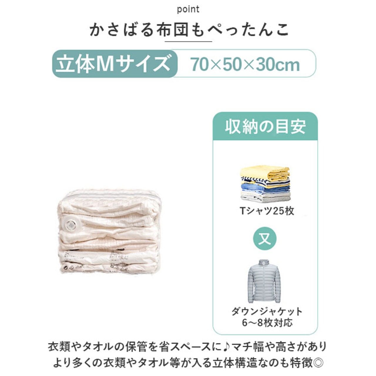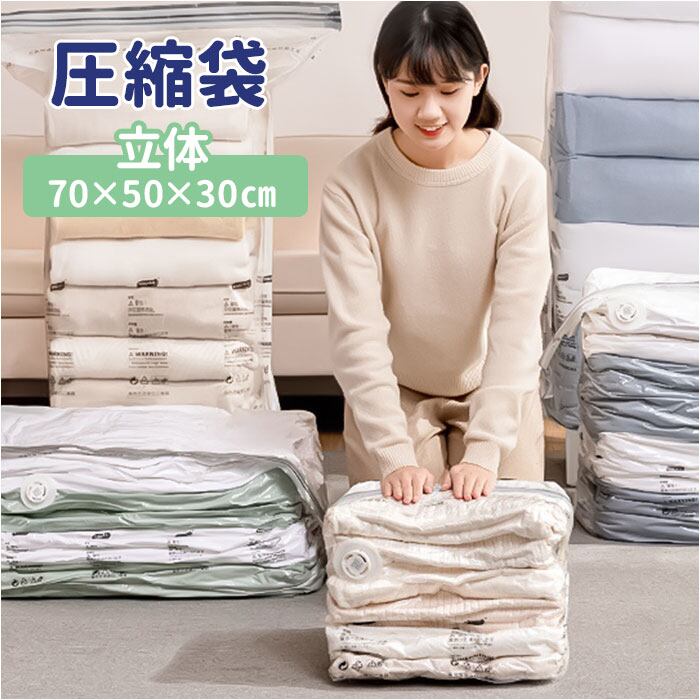 圧縮袋 衣類 通販 立体Mサイズ 50×70×30 50 70 30cm 衣類収納袋 透明 繰り返し クリア 掃除機不要 収納袋 衣類収納 旅行 衣替え 収納用品 整理用品 便利グッズ
