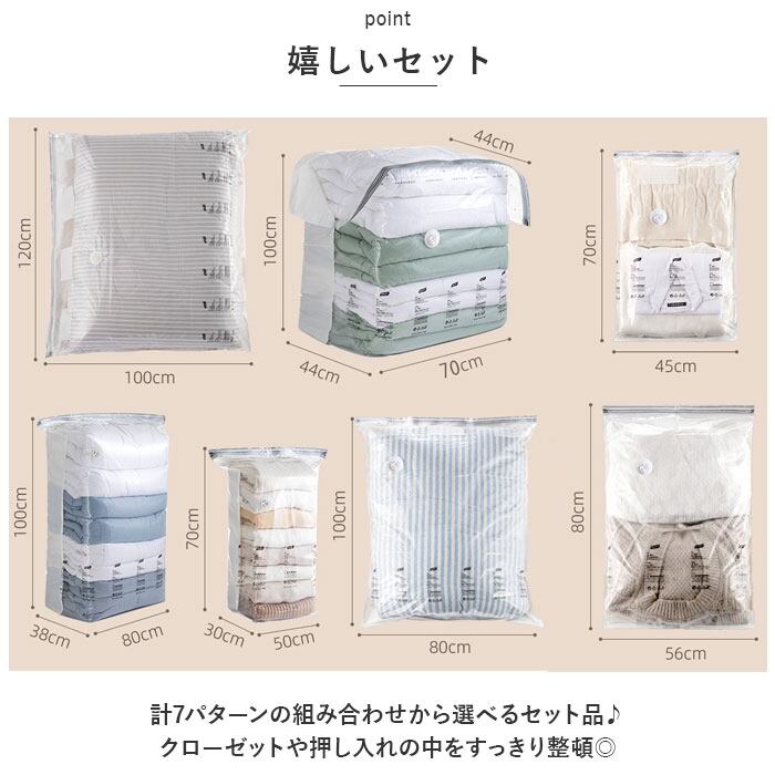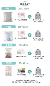 ・大きいサイズのものは羽毛布団や毛布の保管を省スペースに♪簡単真空で圧縮できるのがポイント!