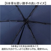 ・5本骨より丈夫な6本骨タイプ。適度な大きさでしっかりと雨から守る、親骨55cm。