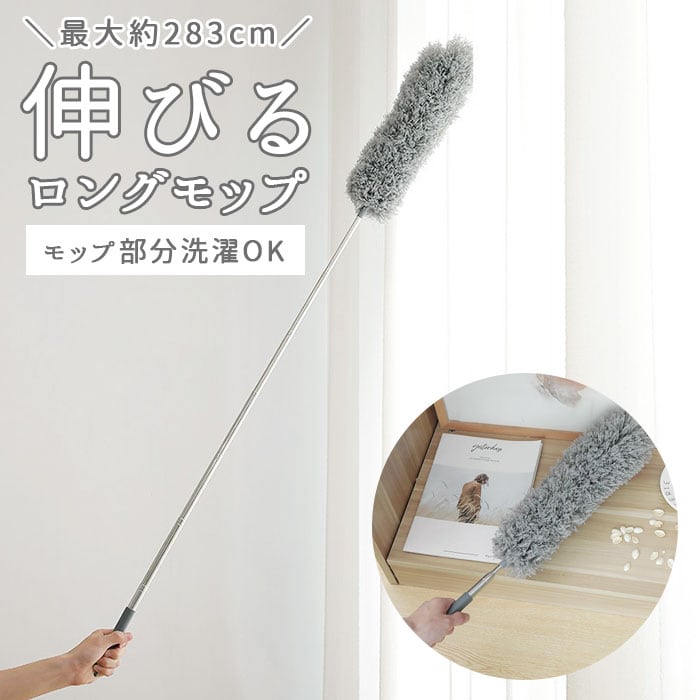 ・ふわふわモップで高い所のホコリをしっかりキャッチ!伸び-るロングモップが新登場。