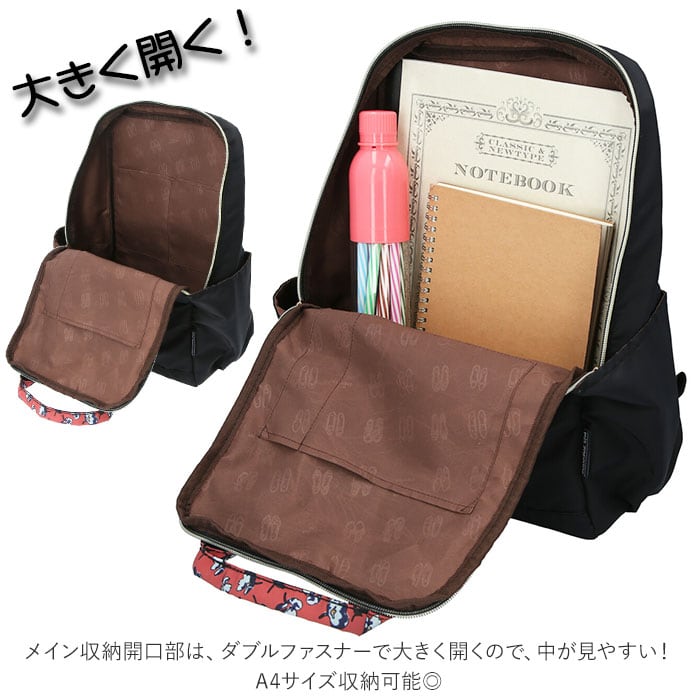 ・メイン収納開口部は、ダブルファスナーで大きく開くので、中が見やすい。A4サイズ収納可能。