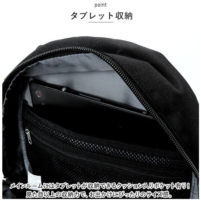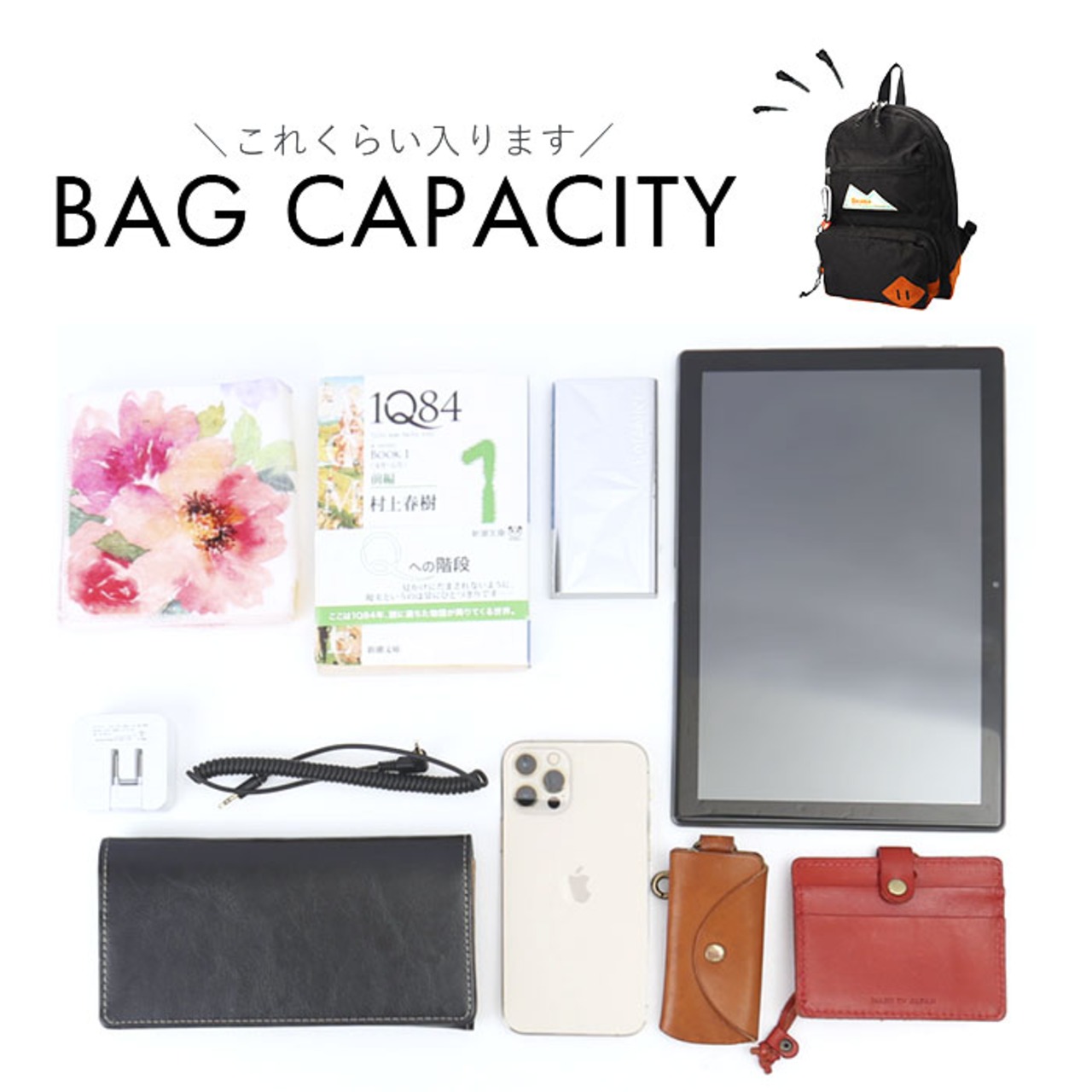 ・メインルームにはタブレットが収納できるクッション入りポケット有り!見た目以上の収納力で、お出かけにぴったりのサイズ感。