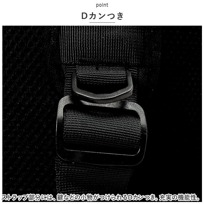 ・ストラップ部分には、鍵などの小物がつけられるDカンつき。充実の機能性。