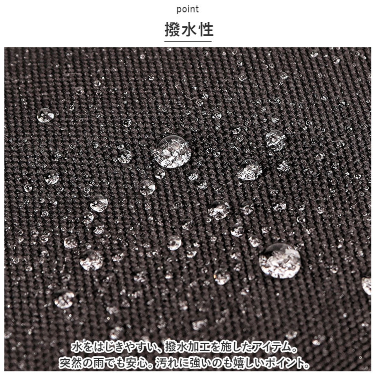 ・水をはじきやすい、撥水加工を施したアイテム。突然の雨でも安心。汚れに強いのも嬉しいポイント。