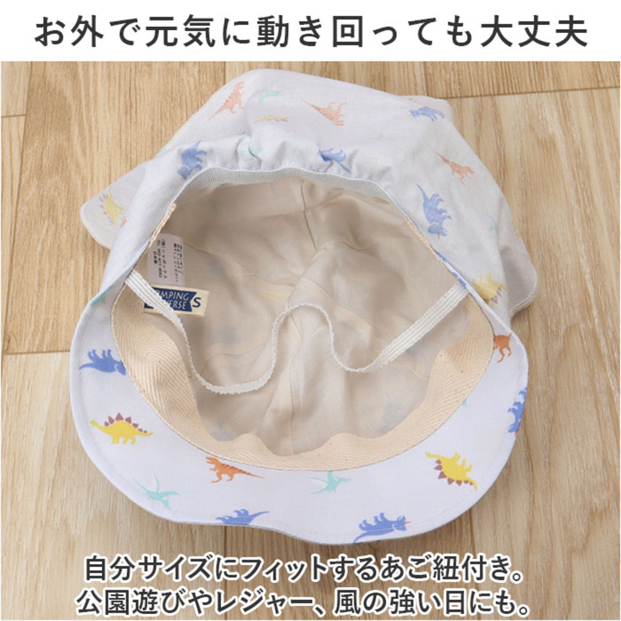 ・自分サイズにフィットするあご紐付き。公園遊びやレジャー、風の強い日にも。