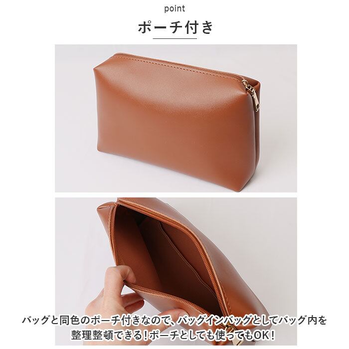 ・バッグと同色のポーチ付きなので、バッグインバッグとしてバッグ内を整理整頓できる!ポーチとしても使ってもOK!