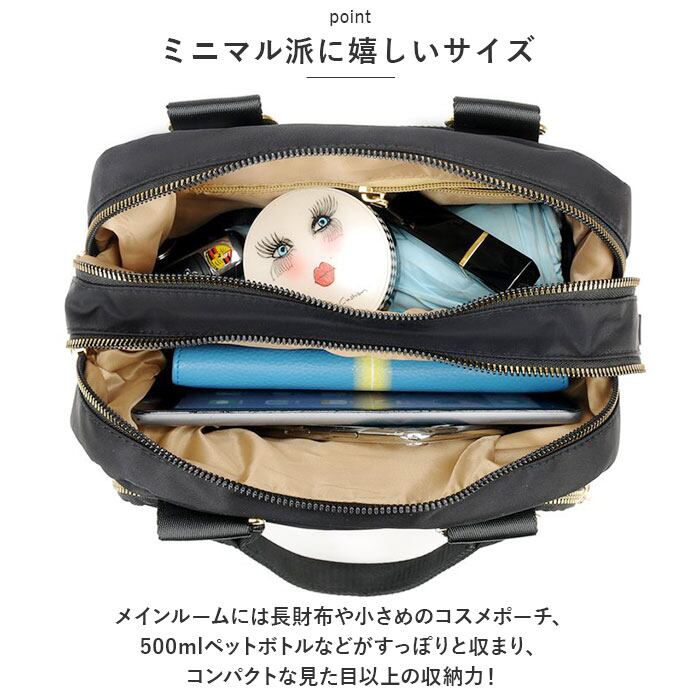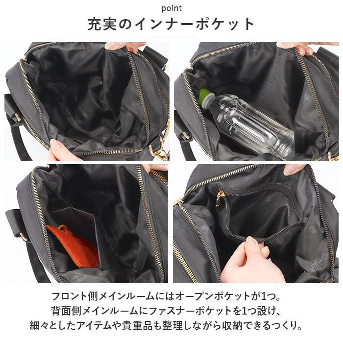 ・ファスナーで開くメインルームを前後に2つ配置した2ルーム構造で、小物を上手に仕分けて誰でも収納上手に!