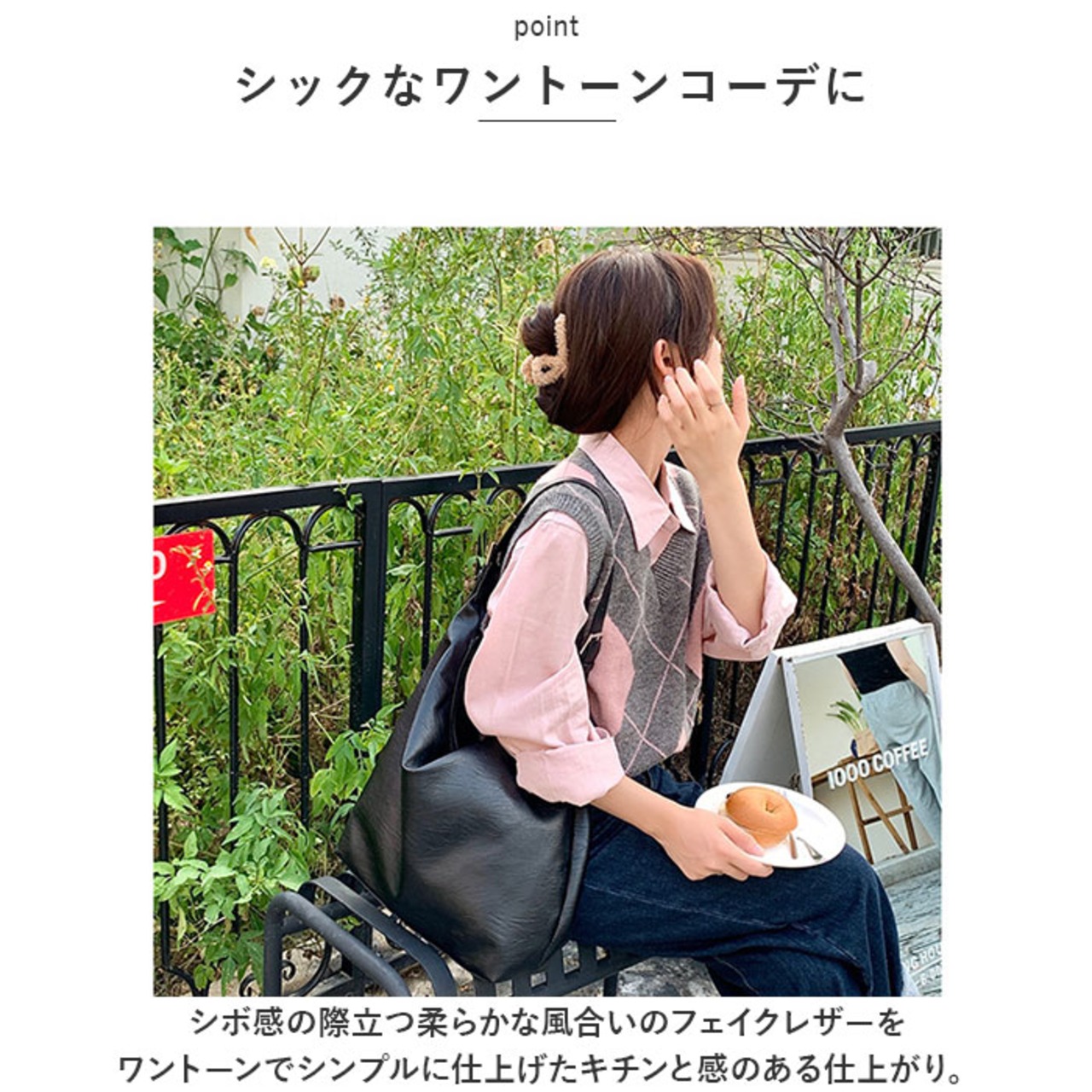 ・シボ感の際立つ柔らかな風合いのフェイクレザーを、ワントーンでシンプルに仕上げたキチンと感のある仕上がり。