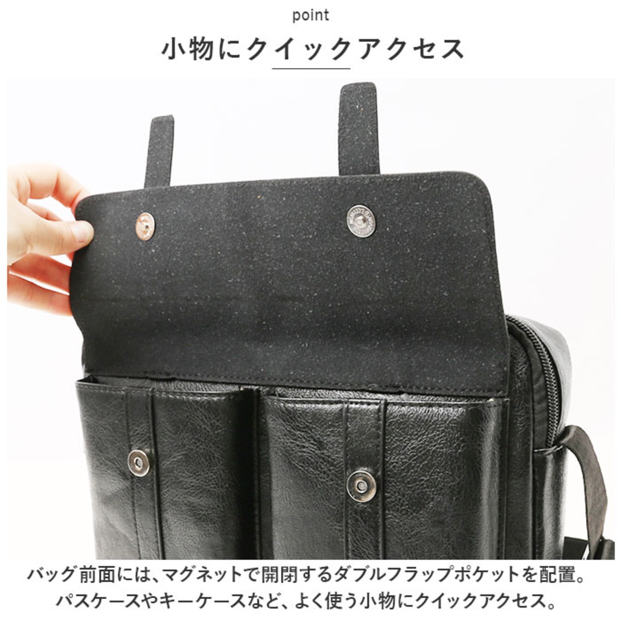 ・バッグ前面には、マグネットで開閉するダブルフラップポケットを配置。パスケースやキーケースなど、よく使う小物にクイックアクセス。