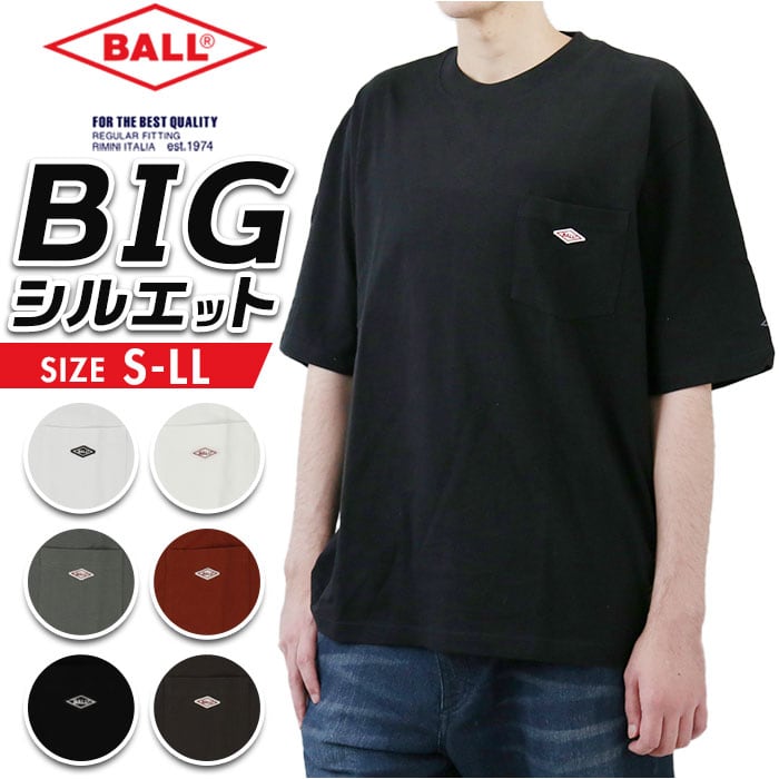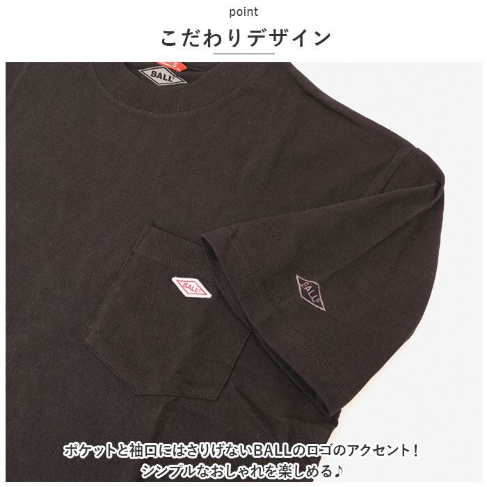 半袖 Tシャツ メンズ 綿100 通販 カットソー ポケットTシャツ ポケット付き ビッグシルエットTシャツ ティーシャツ ブランド BALL ボール 52560 おしゃれ シンプル 無地 ロゴワッペン ロゴ 刺繍 ゆったり トップス メンズファッション