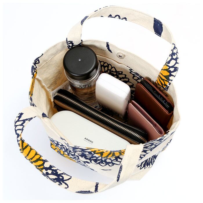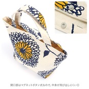 ・マチがしっかりあり、本体と同柄の取り外し可能な底板付きなので、お弁当箱や荷物を安定した状態で収納可能。