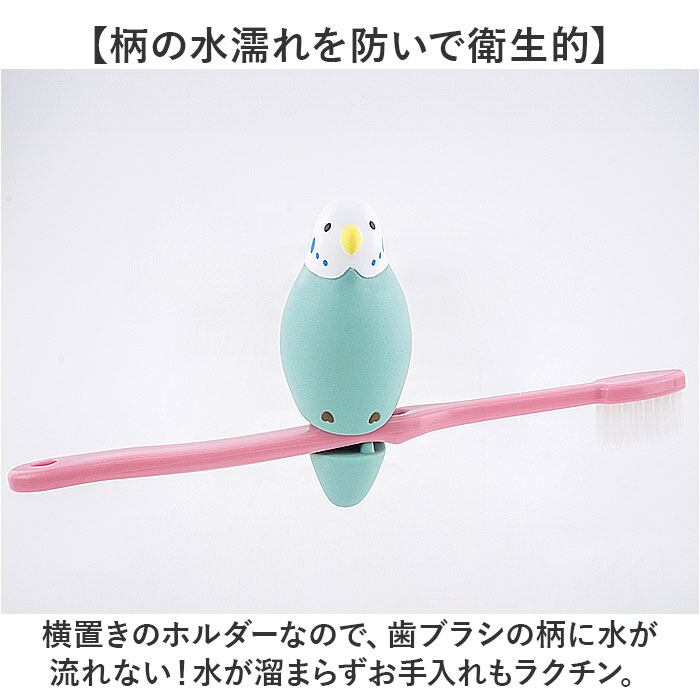 ・ホルダーの溝に歯ブラシを挟んで収納!小鳥が歯ブラシにとまっているような仕上がり。