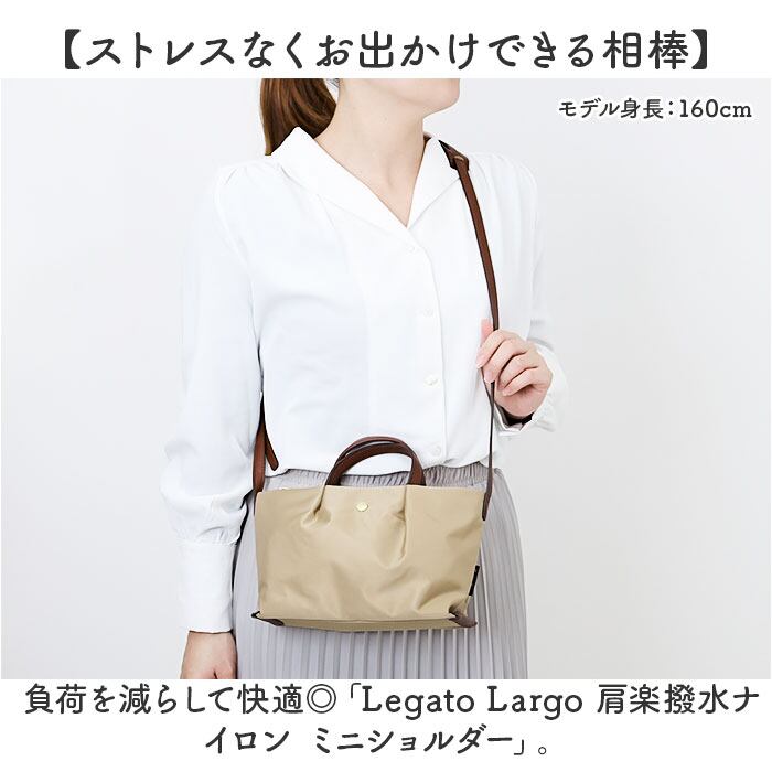 ・負荷を減らして快適◎「Legato Largo 肩楽撥水ナイロン ミニショルダー」。