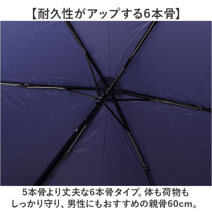 ・5本骨より丈夫な6本骨タイプ。体も荷物もしっかり守り、男性にもおすすめの親骨60cm。