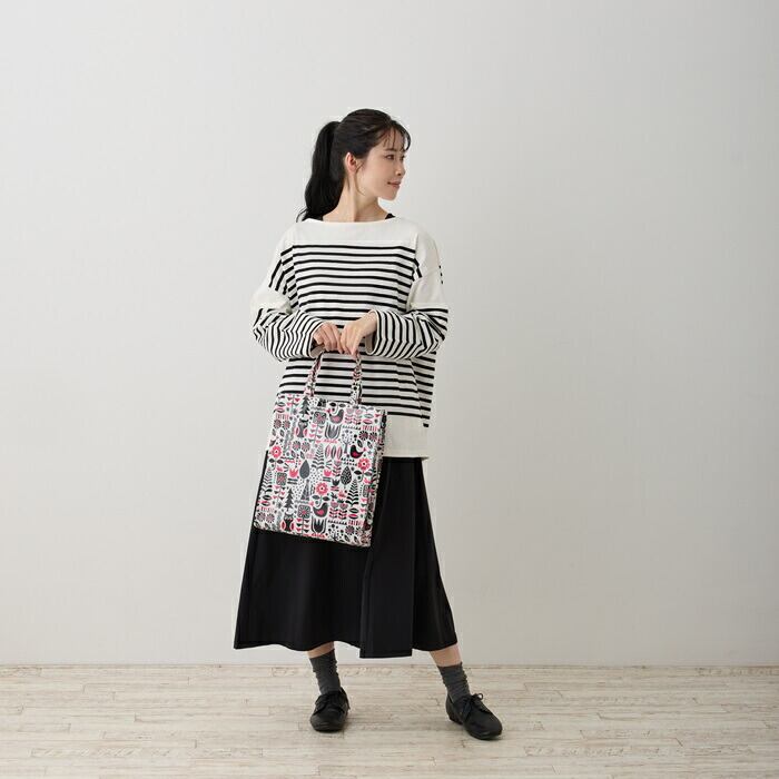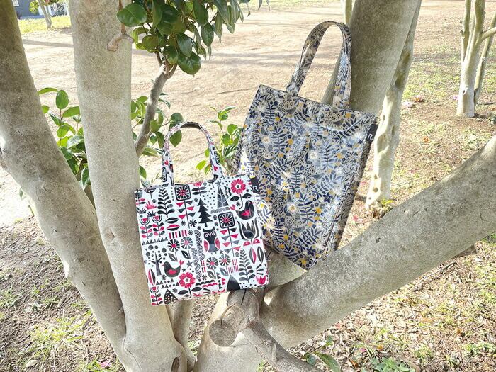 持ち手:綿(ノンフタル酸PVCラミネート加工)/底板:ベルポーレン/留め具:マグネットホック