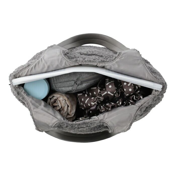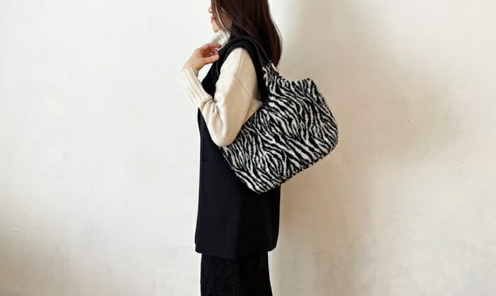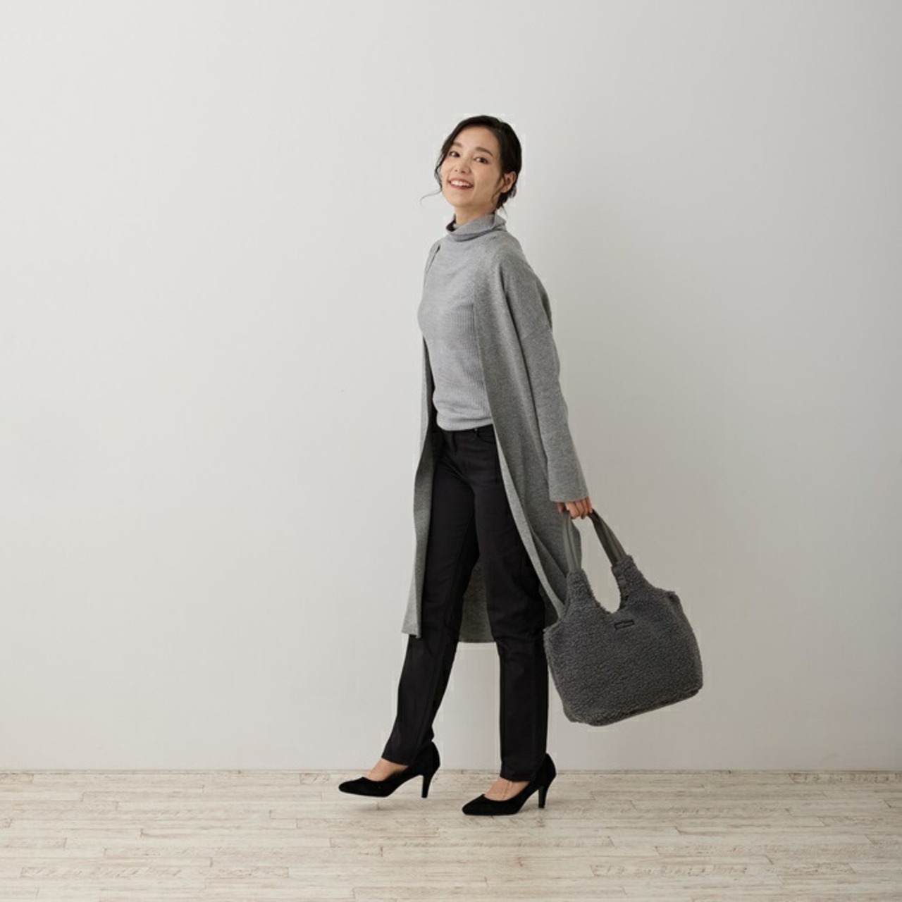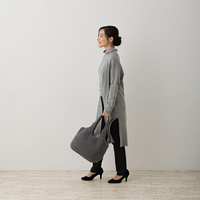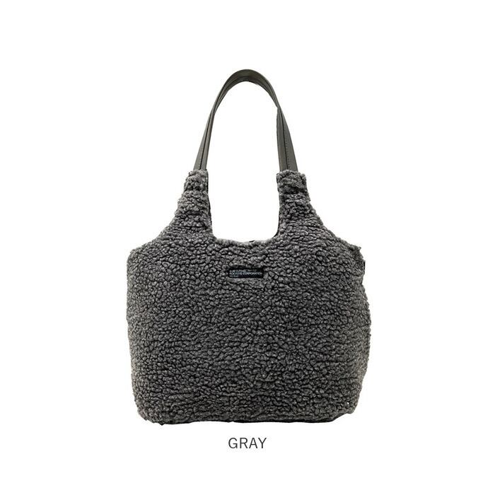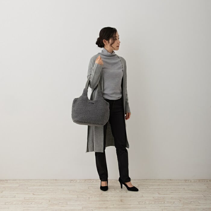 ・コロンとした丸みのあるフォルムと軽さ。もこもことしたボア素材と合成皮革の持ち手、異素材の組み合わせで大人っぽい仕上がりに。