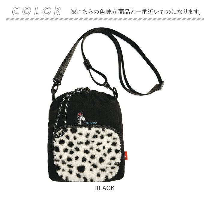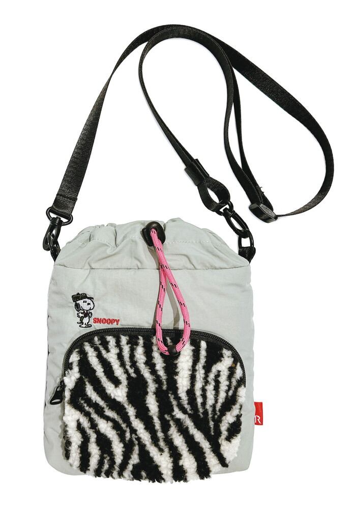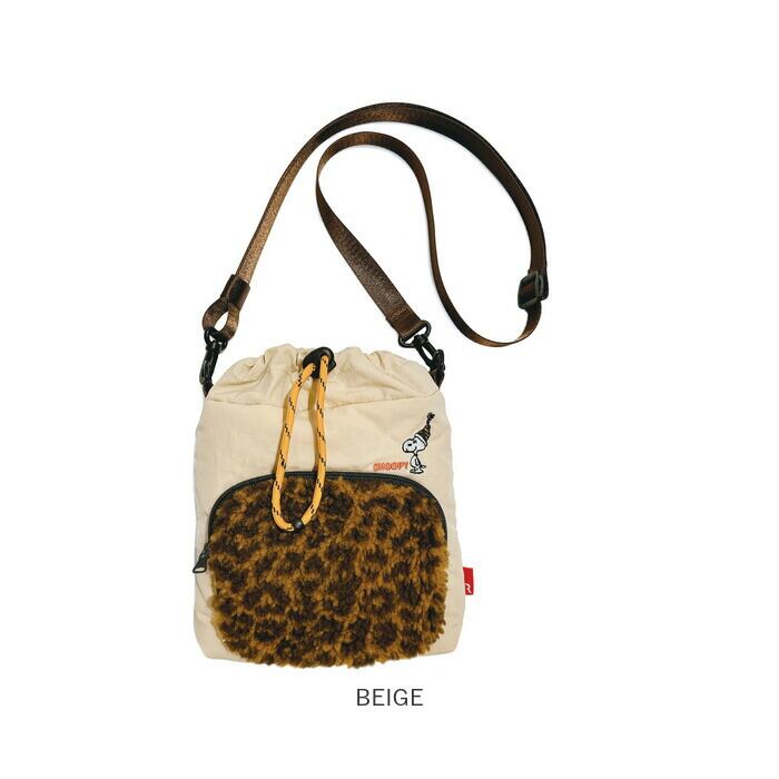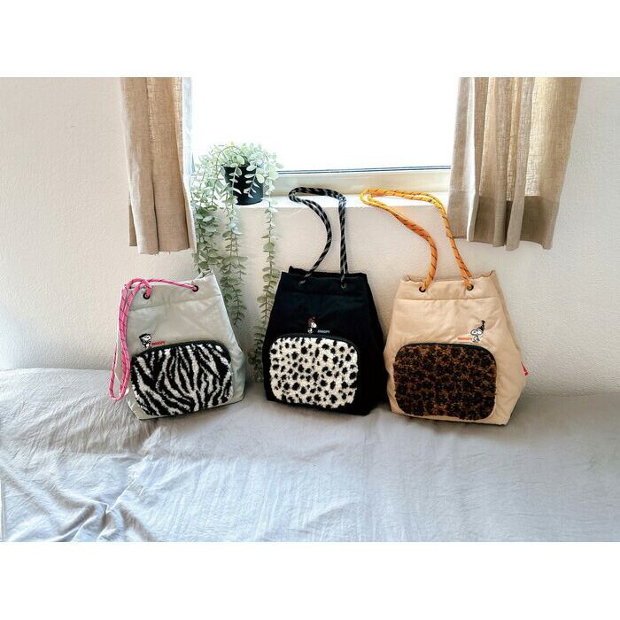 ・アニマル柄のもこもこボアポケットがアクセント。ポケット上部にひょっこりいるワンポイント刺繍のスヌーピーがかわいい!