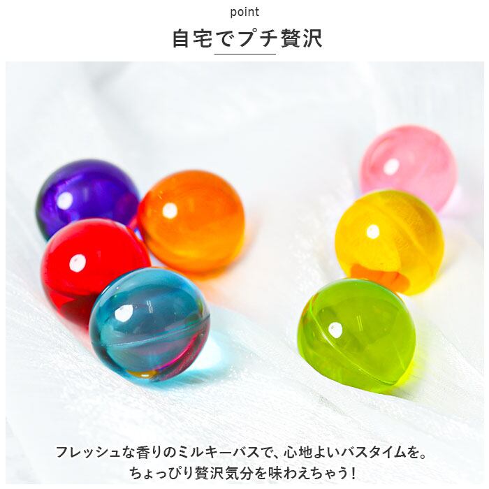 ・植物の葉や花、果実などから抽出されるエッセンシャルオイルを取り入れた入浴剤。バスタブに入れると、カプセルが溶けてミルク色に!