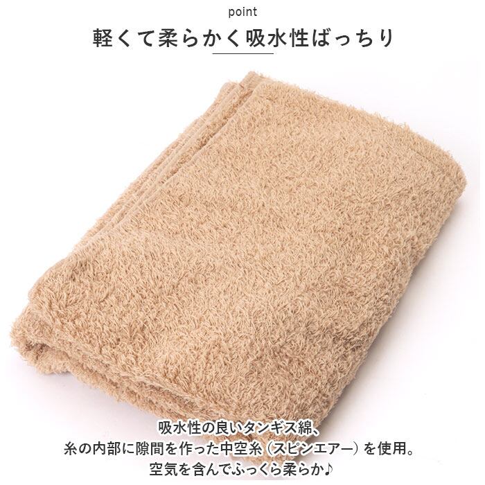 ・吸水性の良いタンギス綿、糸の内部に隙間を作った中空糸(スピンエアー)を使用。空気を含んでふっくら柔らか♪