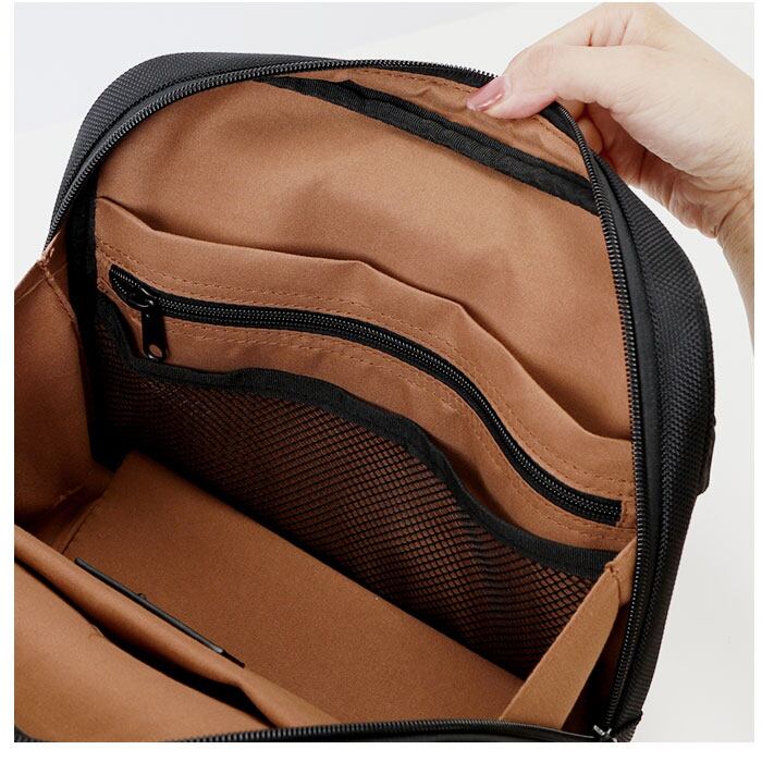・メインルームはメッシュポケット×1、オープンポケット×1、ファスナーポケット×1、さらにタブレット機器を入れられるクッション材入りのポケット×1個装備。