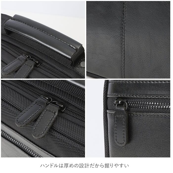 ・持ち手とフロントに合皮素材を施しカジュアルながらもかっこいい印象に。普段使いや旅行のサブバッグ、またビジネスシーンまで幅広く活躍してくれる。