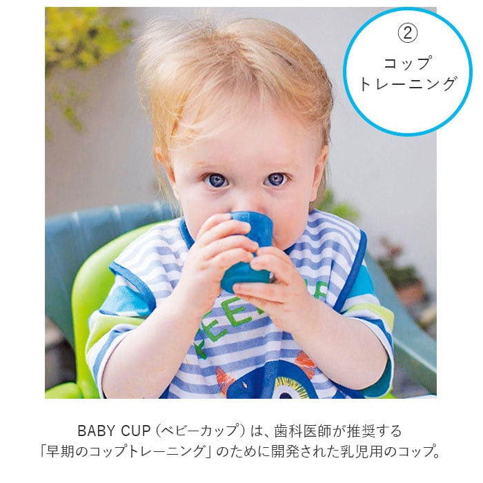 ・BABY CUP(ベビーカップ)は、歯科医師が推奨する「早期のコップトレーニング」(※)のために開発された乳児用のコップ。