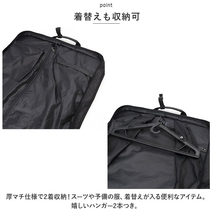 ・厚マチ仕様で2着収納!スーツや予備の服、着替えが入る便利なアイテム。