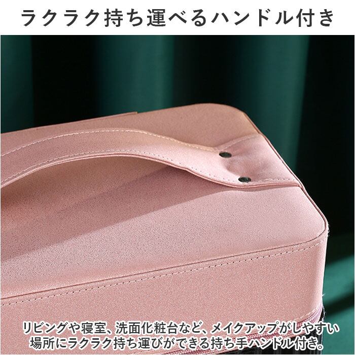 ・リビングや寝室、洗面化粧台など、メイクアップがしやすい場所にラクラク持ち運びができる持ち手ハンドル付き。