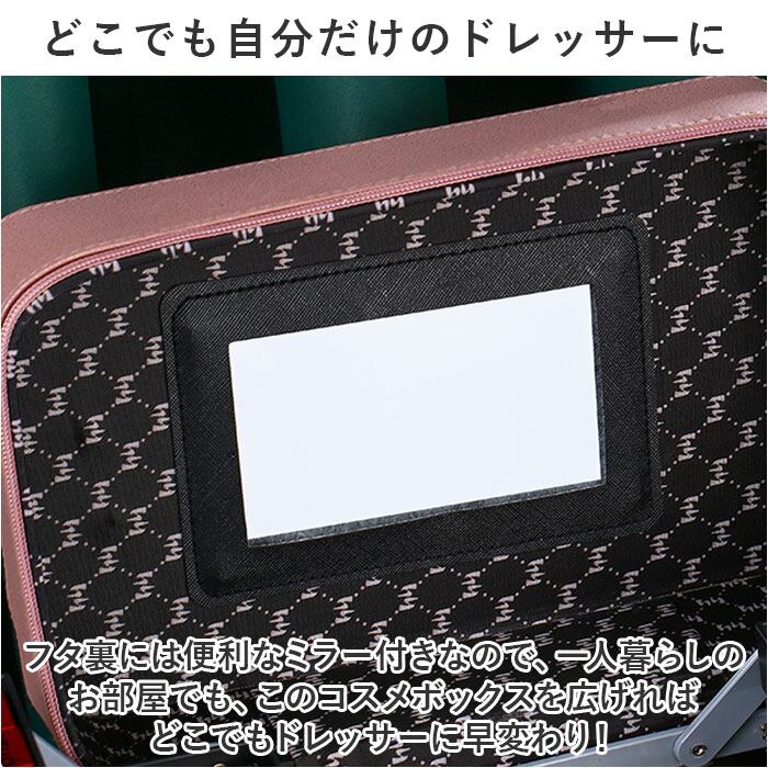 ・フタ裏には便利なミラー付きなので、一人暮らしのお部屋でも、このコスメボックスを広げればどこでもドレッサーに早変わり!