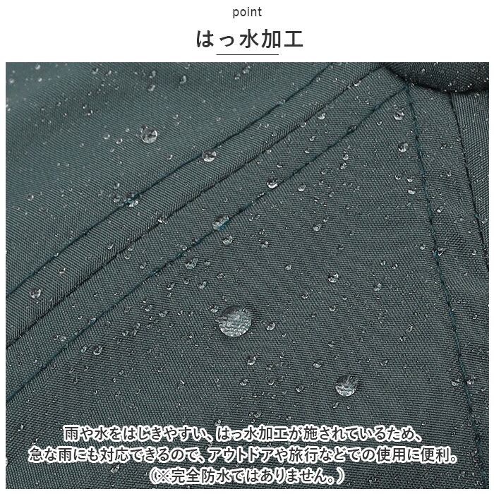 ・雨や水をはじきやすい、はっ水加工が施されているため、急な雨にも対応できるので、アウトドアや旅行などでの使用に便利。(※完全防水ではありません。)