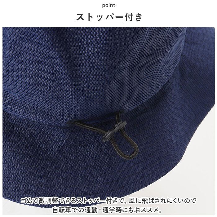 ・ゴムで微調整できるストッパー付きで、風に飛ばされにくいので自転車での通勤・通学時にもおススメ。