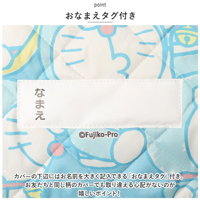 ・カバーの下辺にはお名前を大きく記入できる「おなまえタグ」付き。お友だちと同じ柄のカバーでも取り違える心配がないのが嬉しいポイント!