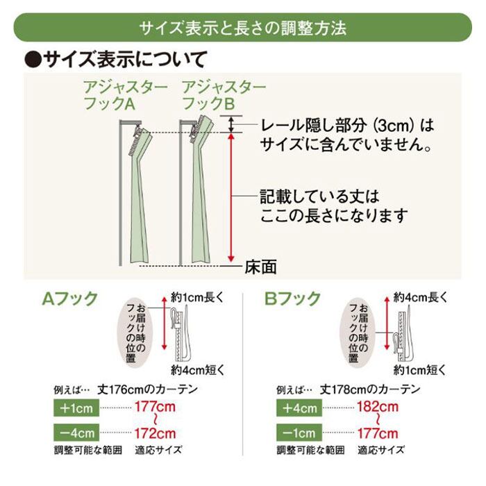 ・アジャスターフックを使って、カーテン丈の微調整が可能。