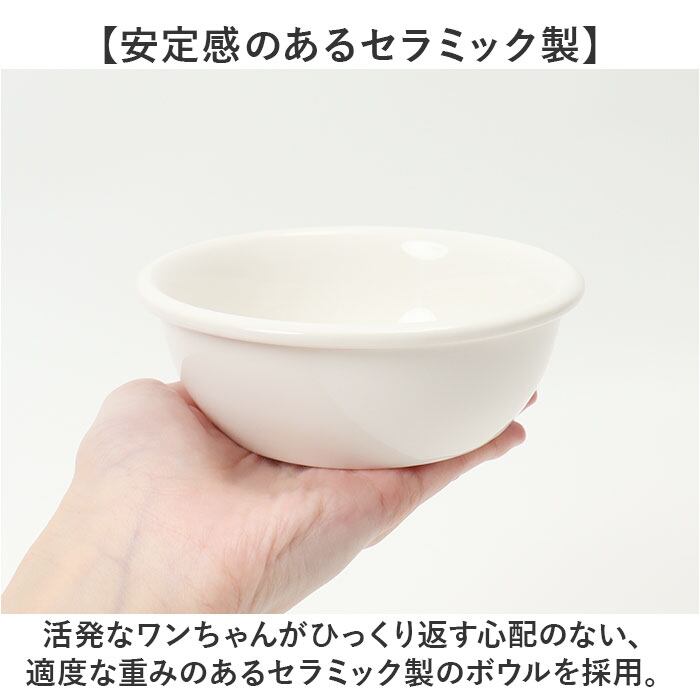 ・活発なワンちゃんがひっくり返す心配のない、適度な重みのあるセラミック製のボウルを採用。