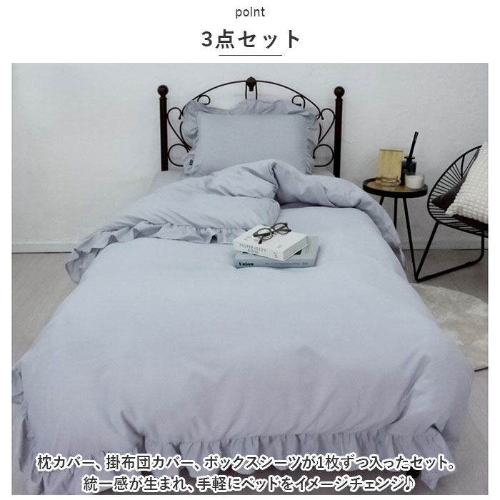 ・ざっくり大きいフリルが可愛い♪フリルふとんカバー 3点セットが新発売♪(シングルベッドサイズ)