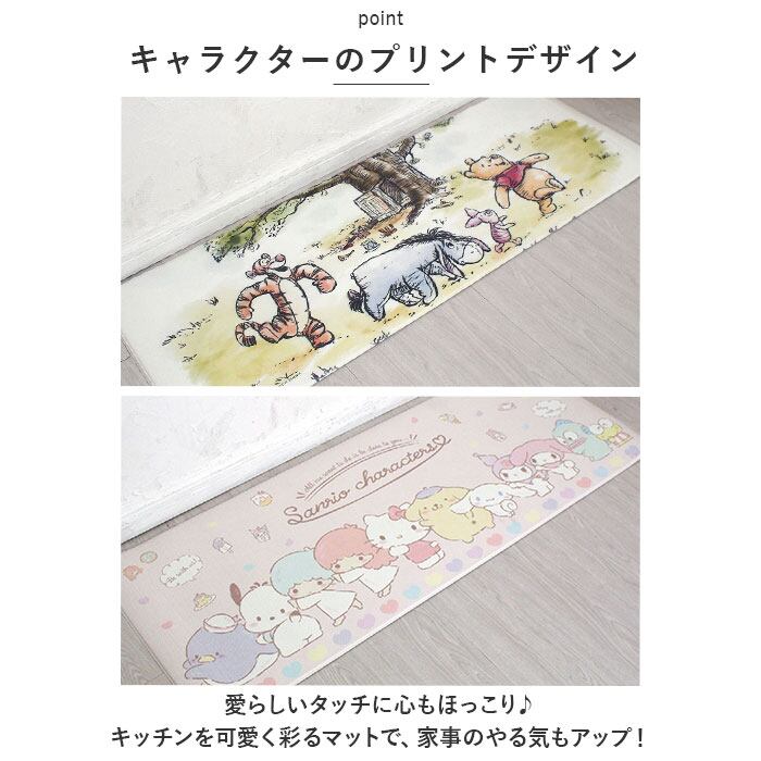 ・キャラクターの絵柄が可愛い♪お手入れラクチンな撥水キッチンマット(45cm×120cm)が新登場。