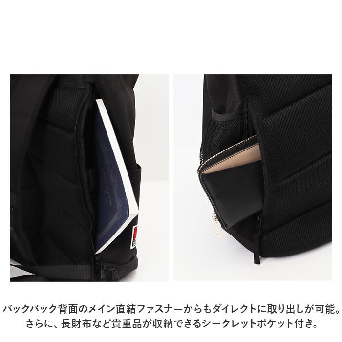 ・背面側に、長財布など貴重品が収納できるシークレットポケット付き。