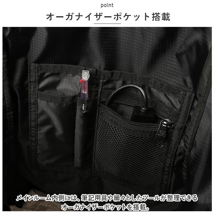 ・メインルーム内側には、筆記用具や細々としたツールが整理できるオーガナイザーポケットを搭載。