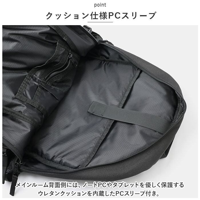 ・トラベルにもモバイル機器の持ち歩きにも最適!「PCスリーブ+充実のポケット構成」で収納力抜群のバックパック。
