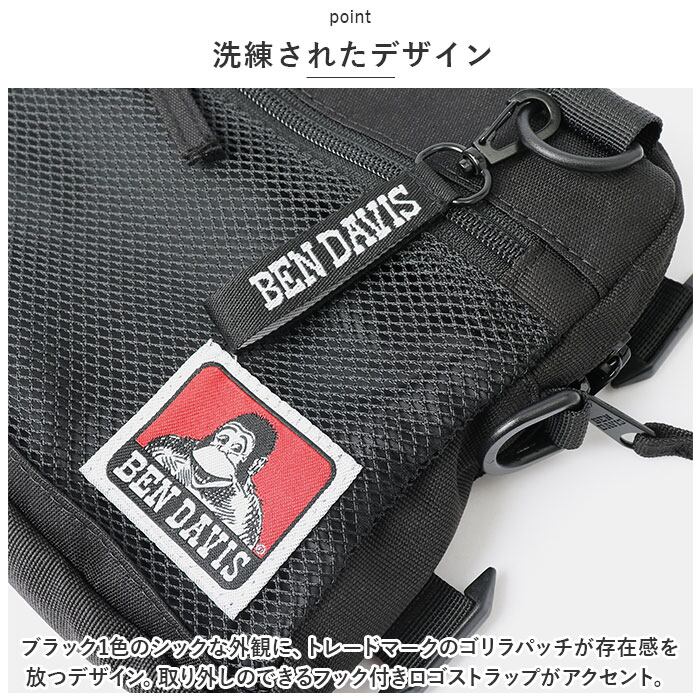 ・ブラック1色のシックな外観に、トレードマークのゴリラパッチが存在感を放つデザイン。取り外しのできるフック付きロゴストラップがアクセント。