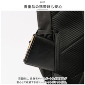 ・メインルーム背面側には、ノートPCやタブレットを優しく保護するウレタンクッションを内蔵したPCスリーブ付き。